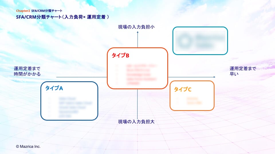 - Chapter2.SFA/CRM分類チャート(タイプA、タイプB、タイプCとは?)