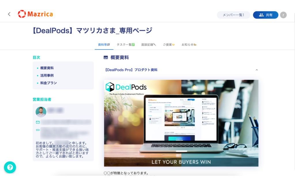 セールスハンドブックが「商談フェーズ」に沿った構成であったため、商談情報を顧客と共有できるデジタルセールスルーム「Mazrica DSR」との相性が良いと感じました。