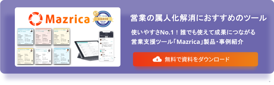 特に、「Mazrica Sales」は営業の属人化を解消するために役立つSFA/CRMツールです。