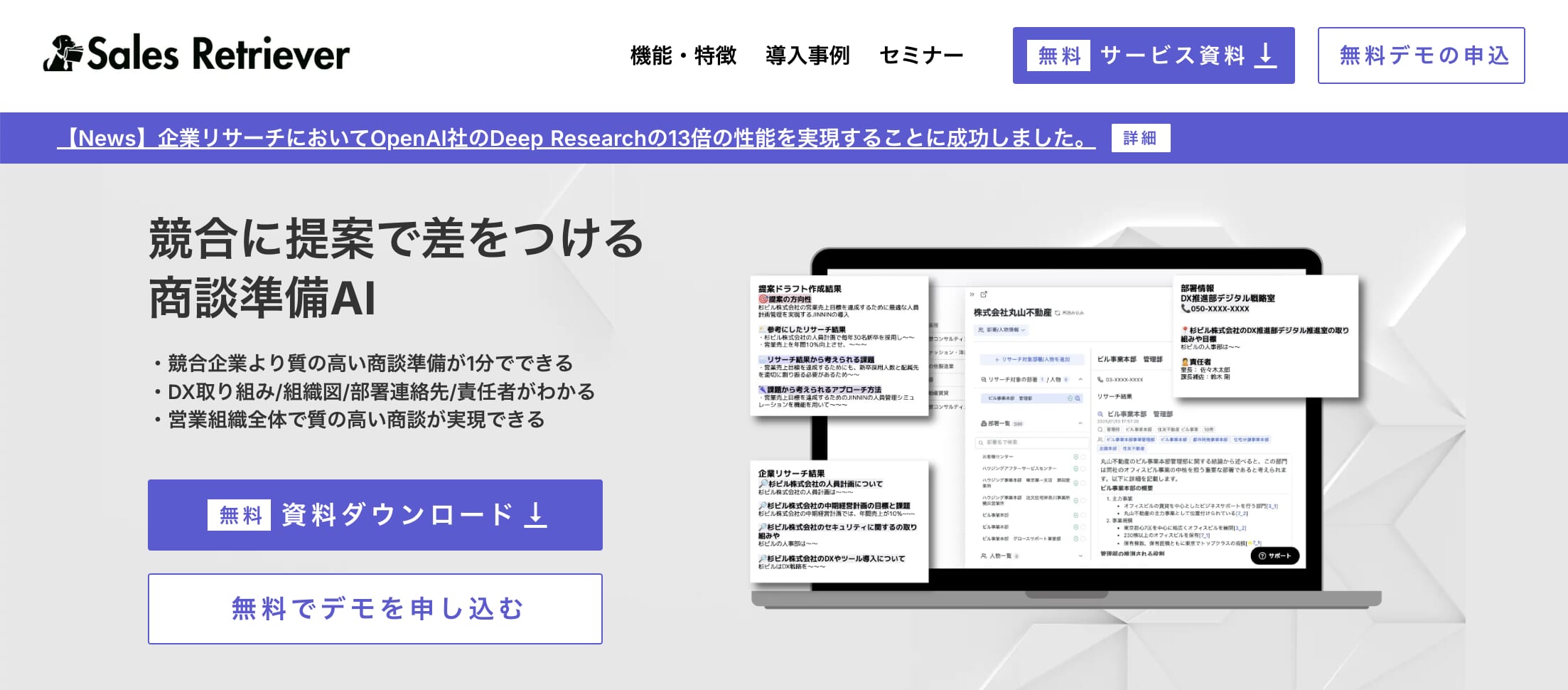 Sales Retrieverは、「競合に提案で差をつける」ための商談準備AIです。