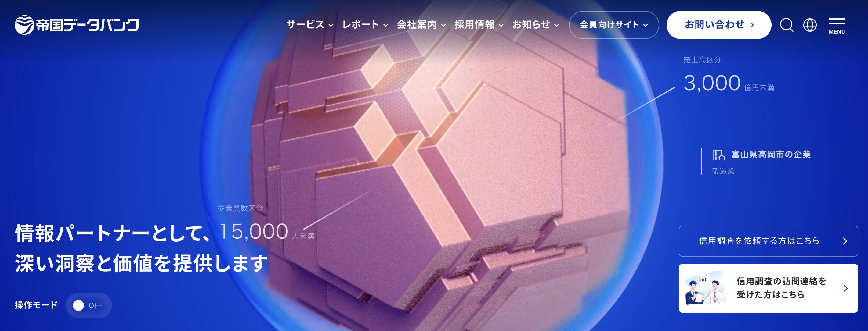 財務情報、組織構造、事業内容、業績、信用情報など、多岐にわたる項目を網羅的に提供しています。